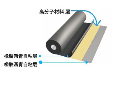 預(yù)鋪反粘,可與后澆注的混凝土粘接為一體,解決了國內(nèi)外放內(nèi)貼(預(yù)鋪)防水難題。